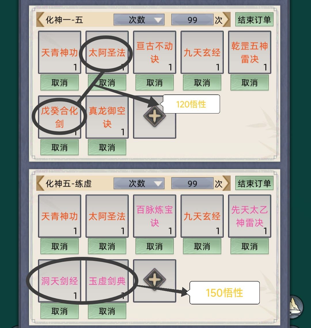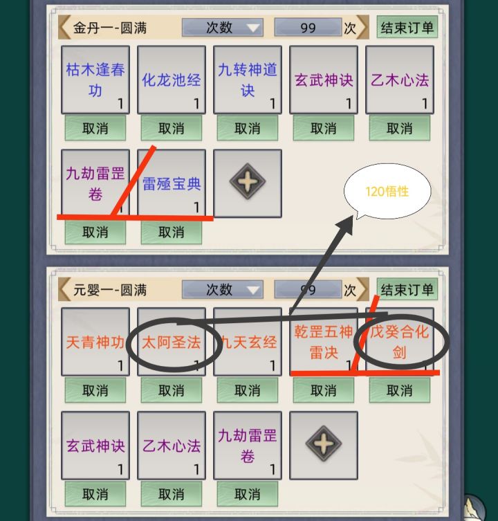 ✿注意☞(有些功法需要悟性需求。而红色的_和/所表示的两本功法看当时有的二选一就好了)