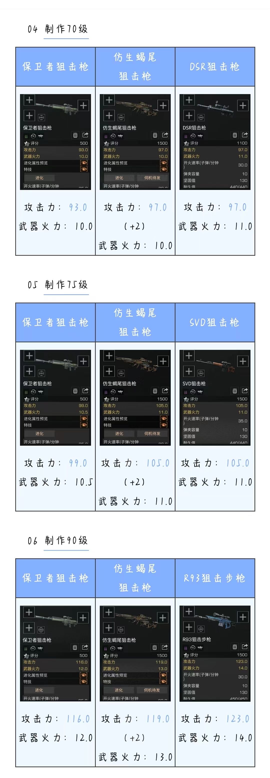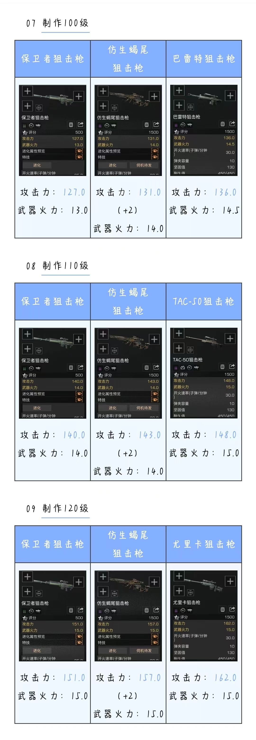 vs各庄园等级狙击枪