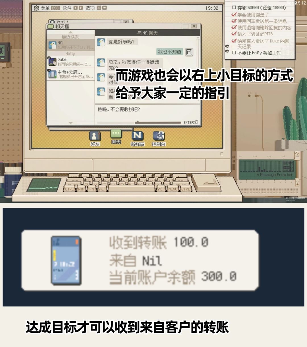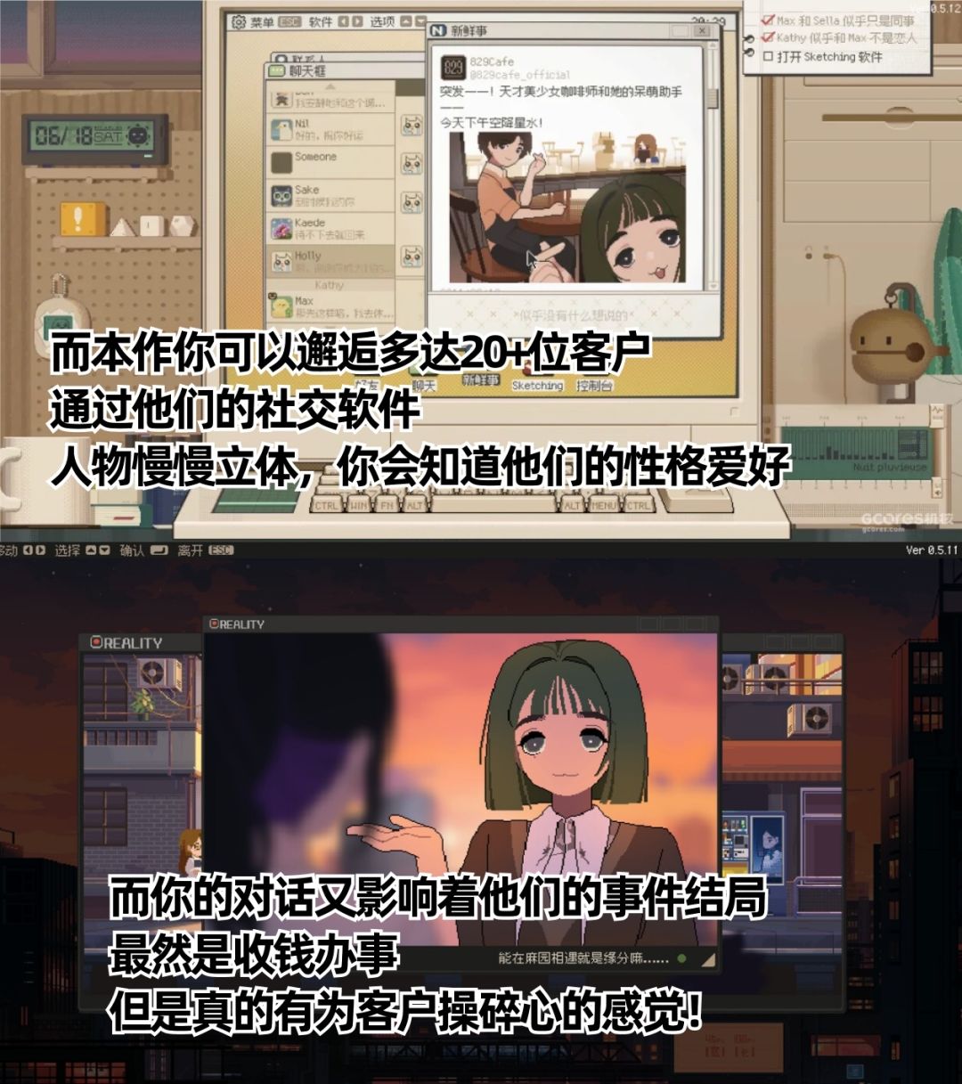 20+客户的烦恼等你解决,而你也可以通过文字内容,影响故事的走向!画风上是像素2D!文字内容也很丰富,有一些人物的对话真的太真实了。比如工作群里的吐槽,对老板的敢怒不敢言……真的带入感超级强!