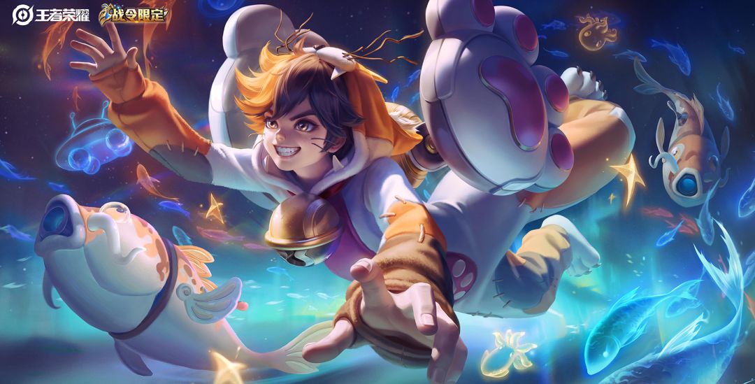 【角色形象】可爱的猫咪主题,用锦鲤和猫咪之间的微妙联系突出趣味性。同时使用了猫咪生气的脸与炸毛的胡子等元素与蒙犽原本的暴躁个性呼应,使皮肤整体更加反差萌。