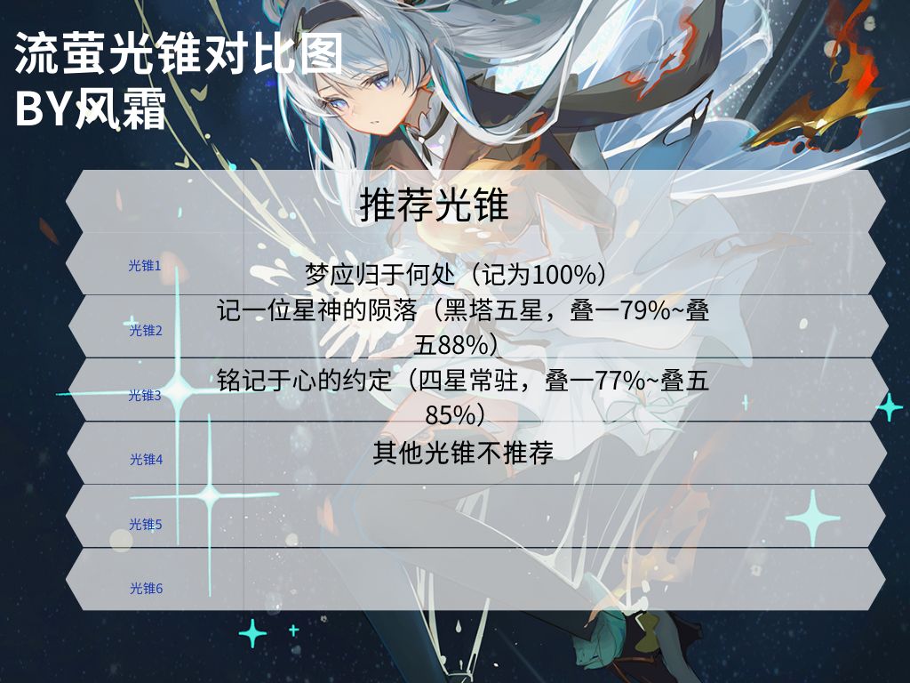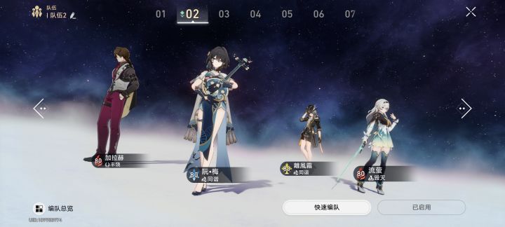 流萤和同谐主高度绑定,阮梅也是基本刚需,没有可以换佩拉但差距巨大。生存位最佳是加拉赫。