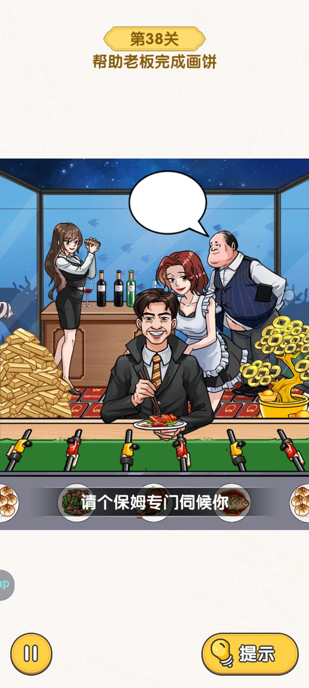 打翻垃圾桶,把钥匙给阿姨。秘书文件给老板,西瓜给化妆女人。疯狂点苍蝇。钟转到五点,下滑男同事,秒表给老板。手机和房契给老头。