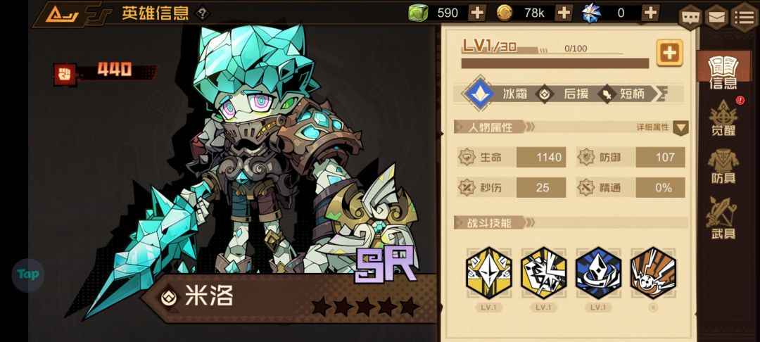 这英雄作为一位火焰系的后援法师,血量堪比一个坦克,拥有3000多滴血,技能更是拥有大范围的AOE伤害召唤陨石,并且特效挺帅的,被动技能是召唤小陨石,有几率眩晕敌人,唯一的缺点可能就是大招打不到空中的地面,伤害比一般,但是这个作为sr英雄,还是挺容易获取的,我前期第一个十连就抽到了他,并且因为它足够肉,把可以放在堆叠层的第一个,为中间两个吸取伤害,我就是用它打通前期第一层深渊的,总的来说,可以作为一位过度英雄,并且是比较优秀的