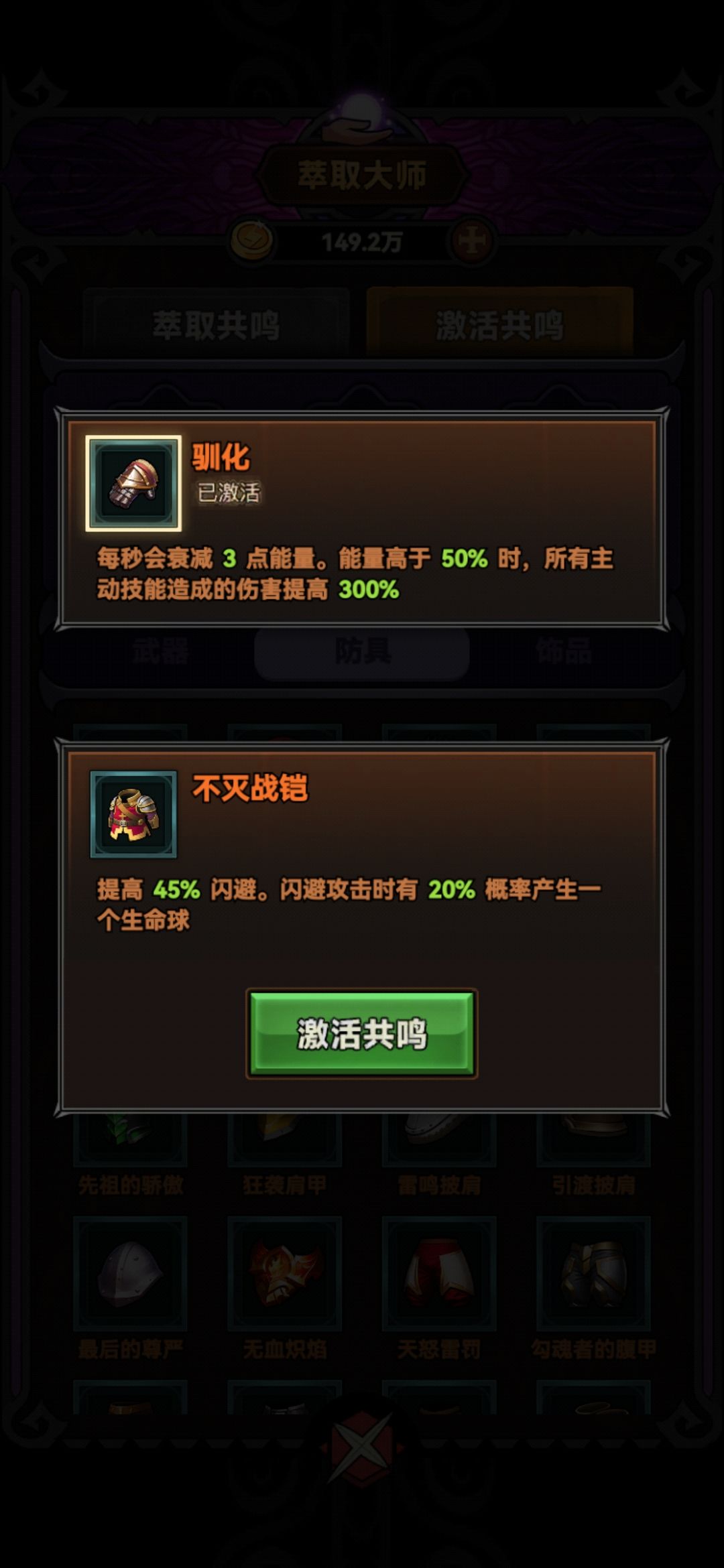 胸甲:不灭战凯/套装(与头盔一样同属防具共鸣,看哪个部位品质高/哪个部位没有绑定装备的,换成套装)