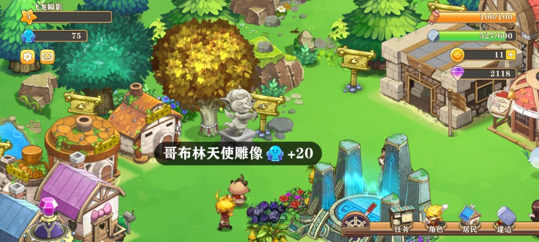 战胜后即可获得一个哥布林天使雕像,一下加20人气值。再加上之前爱德华兄弟那里买的装饰品,即可达到所需人气值。