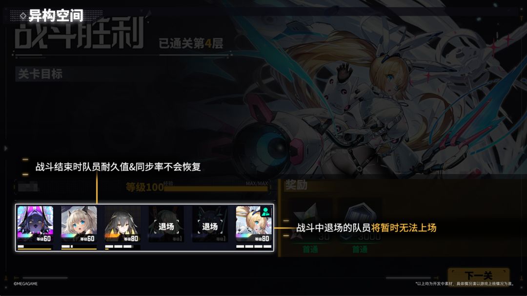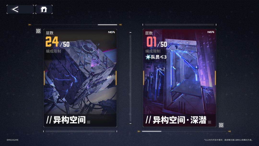 异构空间中,总队长将使用拥有的队员在血量归零前尽可能挑战不同限制的关卡,完成关卡后将会获得养成材料、微晶、粲晶等奖励