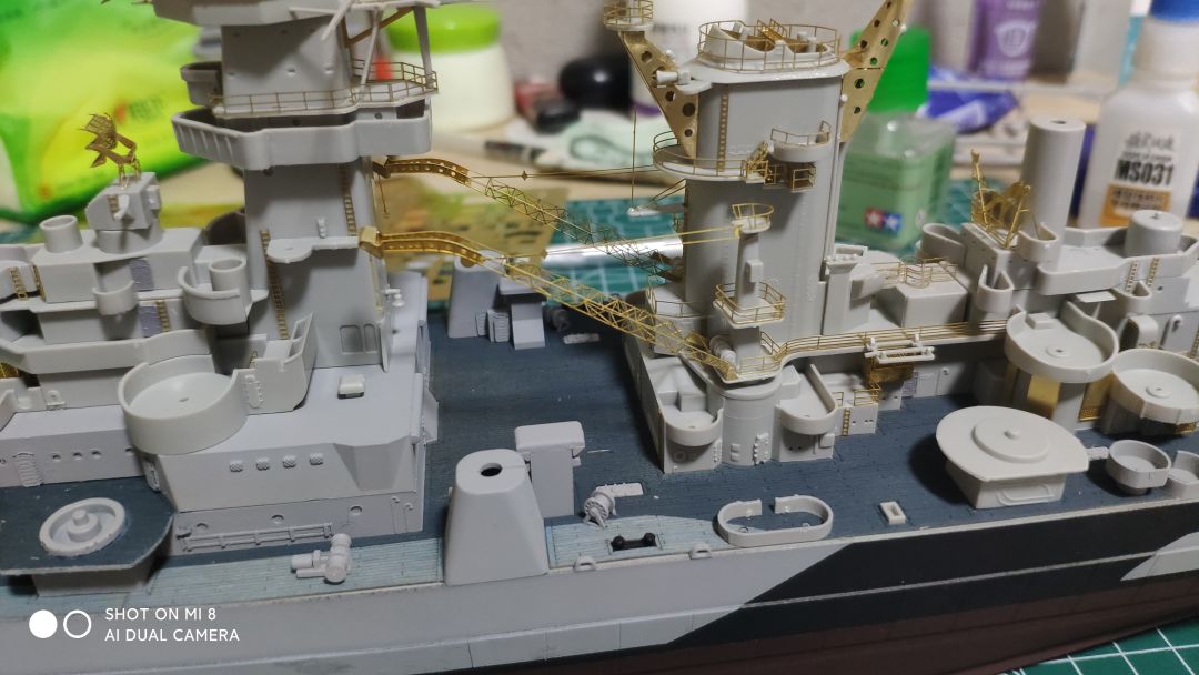 号手这个蚀刻片怎么说呢,量是非常足的,不上改也有比较好的效果,缺点就是太硬,基本都是大光板,没有什么细节,弹射器滑轨连个防滑纹都不愿意给,一个金色大光板(部分地方设计的比较nt,要么太硬,弯都弯不动,要么太细,切下来就变形了