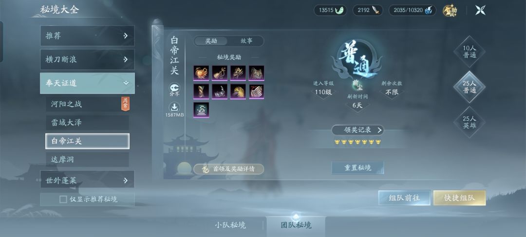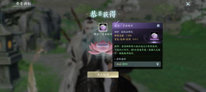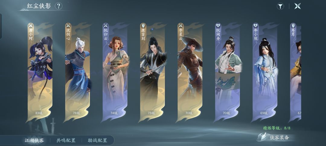 最后就是发财本了,点开秘境,查看掉落,因为都是前尘本的缘故基本都能无脑碾压,一边补成就,一边刷掉落用忆昔石可以反复重置刷,东西可以丑,我不能没有。如果想刷难度高一点的副本那么装备和侠客就得提升,侠客每天点一下,概率出,120次保底出。