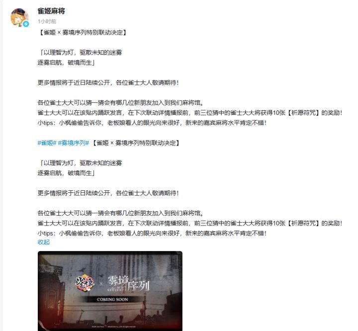 【新闻】雀姬麻将与雾境序列官宣联动