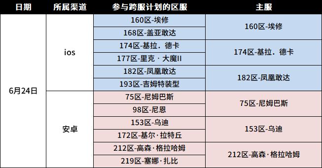 我们已于6月24日开启以下服务器数据互通。服务器数据互通后,原服务器入口依然保留,指挥官依然可以选择原服务器名进行登入。