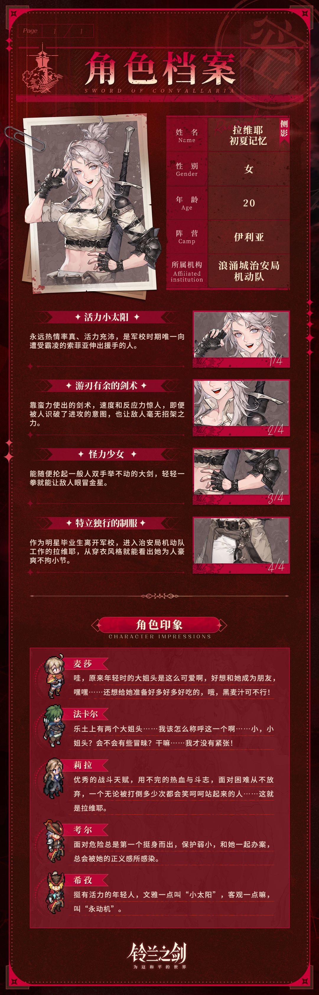 那是光辉历992年的春天,公认的“战斗天才”拉维耶,以全项第一的成绩从浪涌城王国军军校毕业。怀揣着一颗纯粹而澄澈的赤子之心,如“小太阳”般时刻充满活力、散发热情与温暖的她,是军校时期唯一向遭受霸凌的索菲亚伸出援手的人,两人由此成为形影不离的挚友、默契无间的搭档。