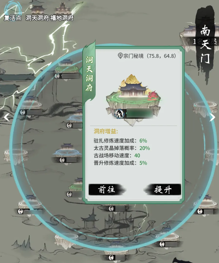 若宗门洞天洞府数量不足,可将洞府迁移至最高等级秘境的福地洞府中(高品质福地洞府修炼速度>低品质洞天洞府修炼速度),最大化利用洞府资源。