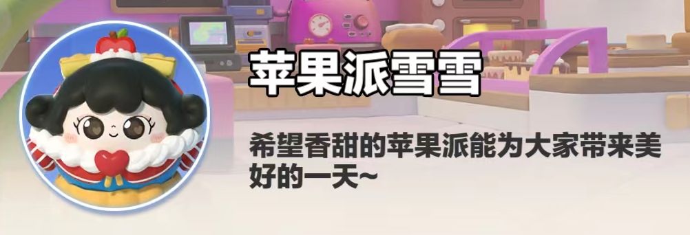 看到蛋仔传呼机上蛋仔岛正在建设的消息,苹果派雪雪决定前来开一家烘焙店,让香甜的味道陪伴大家度过美好的每一天。在平行世界中,苹果派雪雪登场于“蛋糕蜜语”派对季,是蛋仔岛上最受欢迎的烘焙师,而最得意的作品正是苹果派。性格热情开朗的她喜欢和每一个蛋仔交朋友。如果你岛主店外遇到她,轻戳一下,她还会亲切地和岛主打招呼呢~