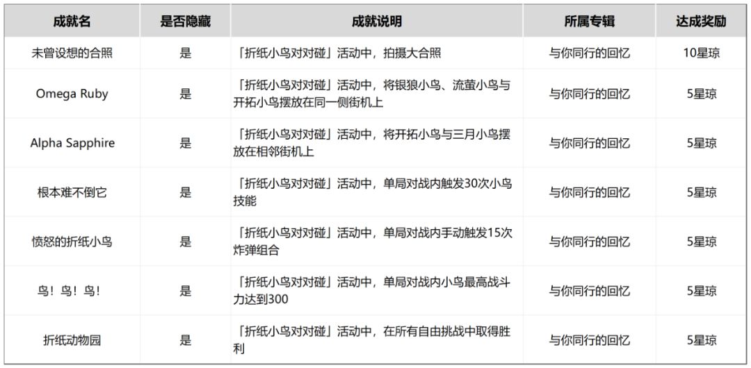 活动做完了?这些可能遗漏—「折纸小鸟对对碰」活动成就获取攻略