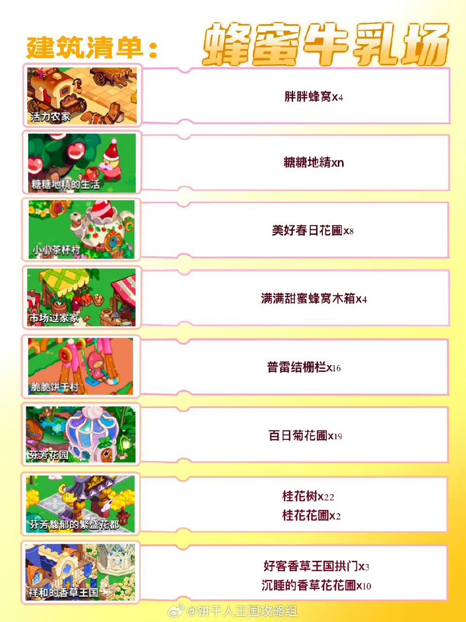 如阳光洒落花丛的黄油暖色调,四个工坊与花树组建故事感蜜蜂牛奶工厂,饼干王国甜蜜的秘密就藏在每一滴蜂蜜里