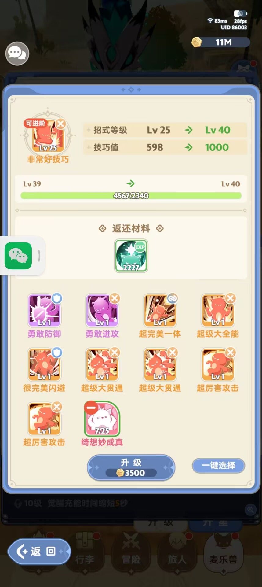 招式40级后:优先将暴伤招式进阶并拉到60级。