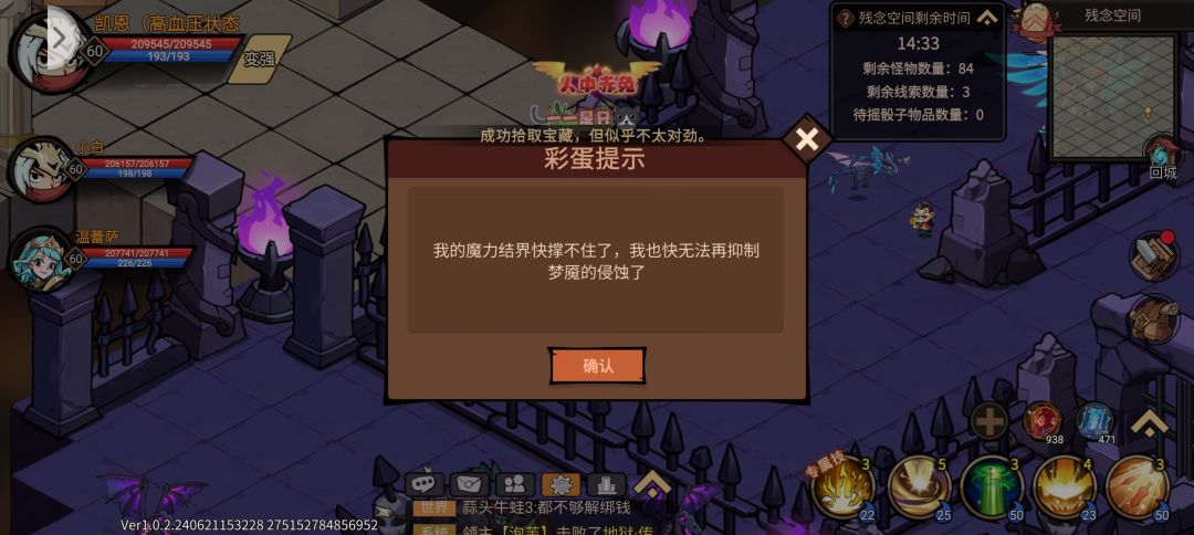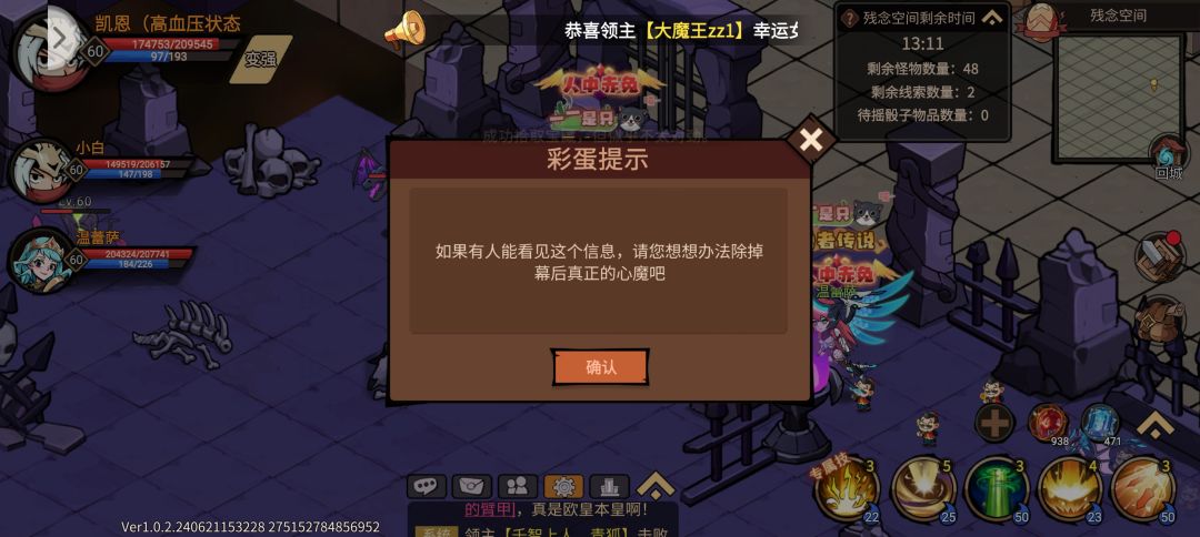 魔王击败后会触发彩蛋提示,掉落物也和天使是一样的,不过后续可能提高爆率或者有特殊掉落。