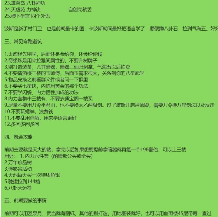 (不要学闪躲力道不要学内力悟性,力神诀卡波斯再回来学,身法和小筋骨适当学一点不必拉)