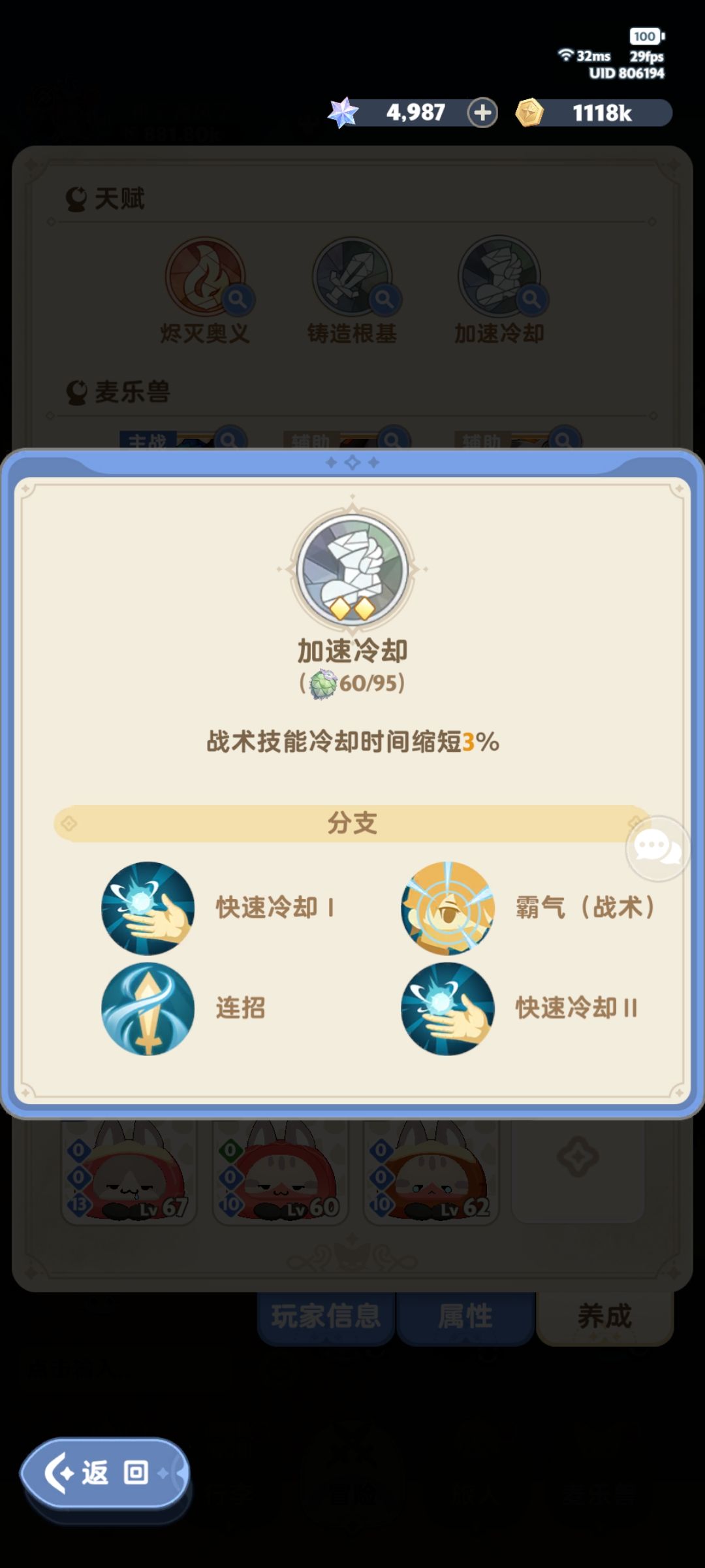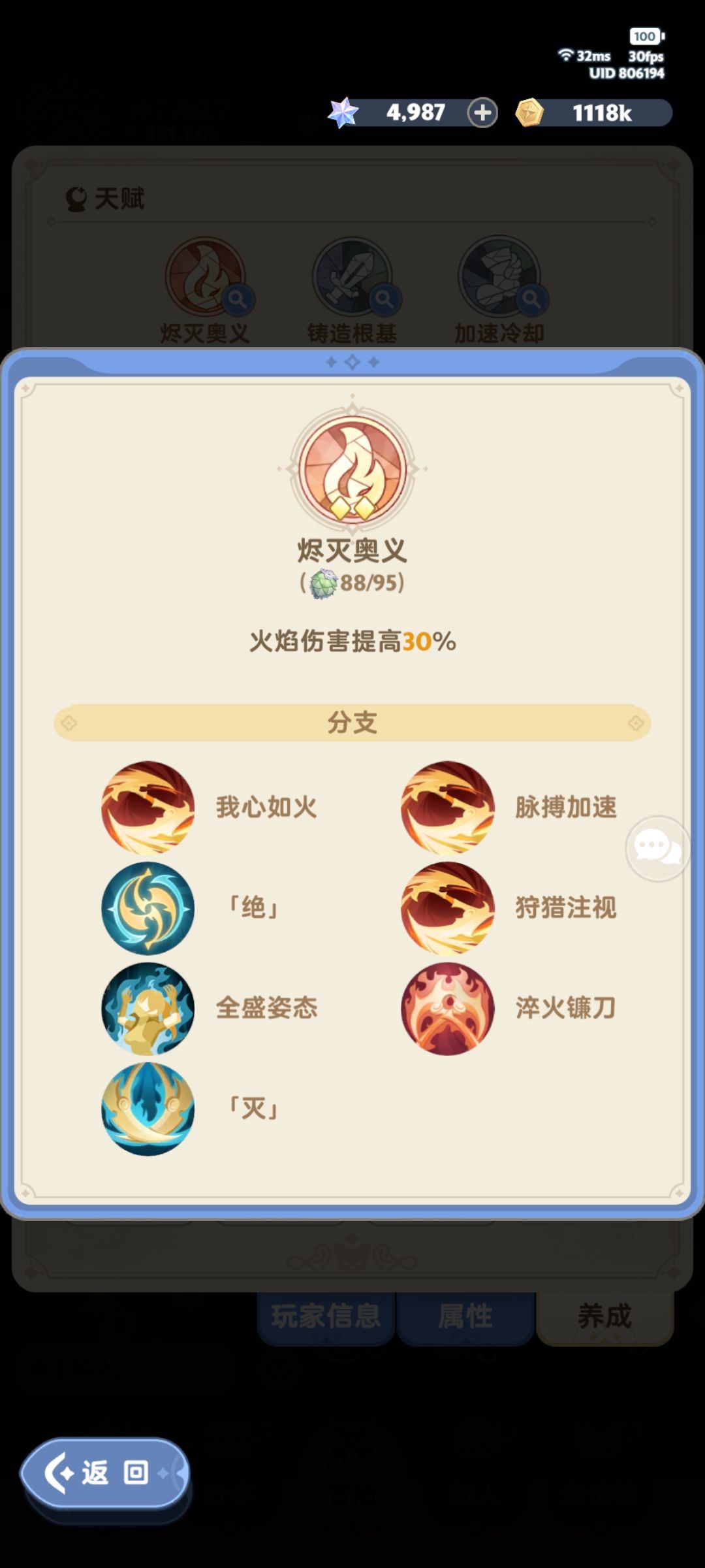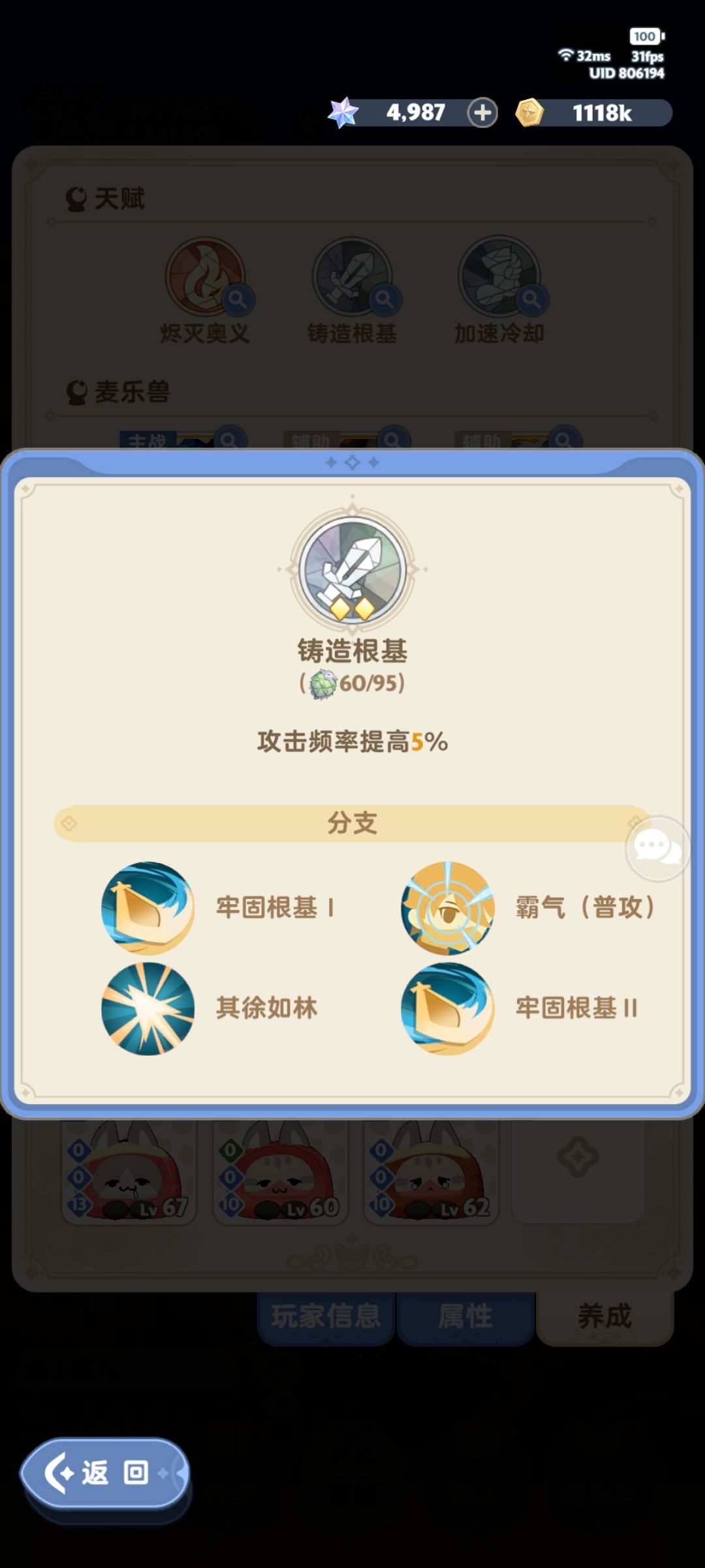 这是天赋选择,高压情况下加速冷却或者铸造根基可以选择换触底,第二就是主天赋一定不要参考其他攻略95点满,实打实负提升!最后的霸气一定不要先点,提升空间很小!