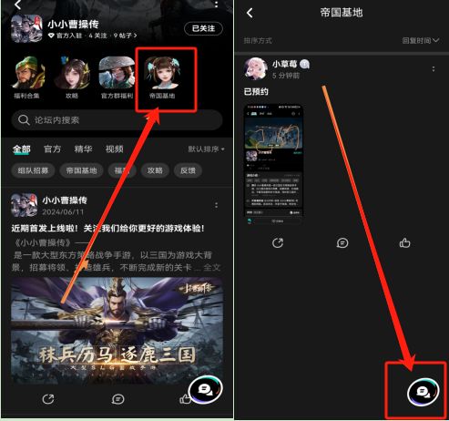 1、在社区板块“帝国基地”中发布新帖,晒出三国豪杰们的预约截图(记得加上个人水印才有效哦~)