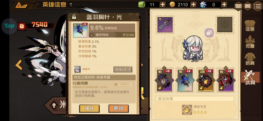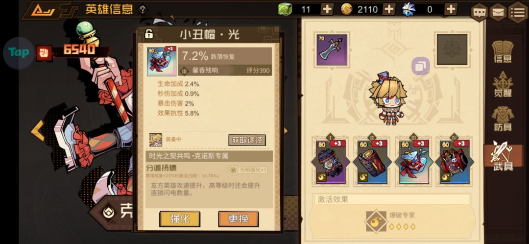 残响:不要刻意追求,因为只是前期阶段,有用的就用别去追求:配套、属性、数值等,也是有等级的看下图