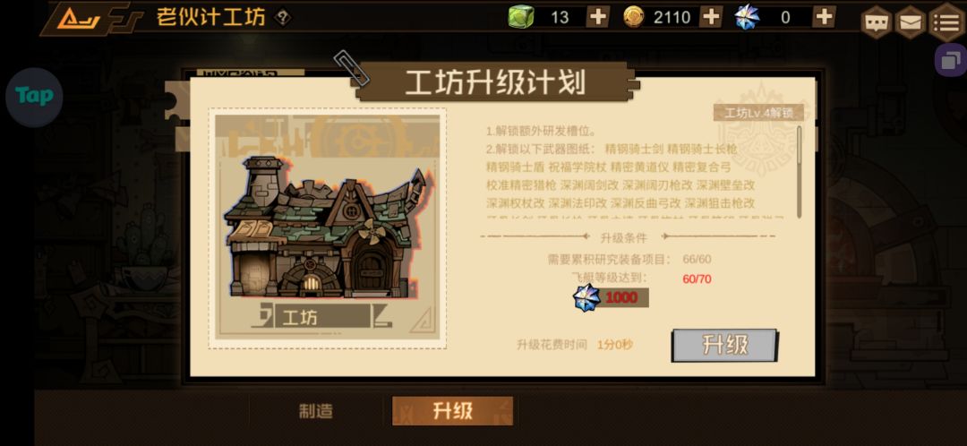 武器:做好一把穿英雄身上在同一系列情况下,只要研究-英雄身上的装备会同时升级。注意下图第一排为一系列,二排只是数值会多一项,但是个人感觉有点鸡肋。因为第一排如果是60级武器500伤害值,第二排就是56级武器400伤害值另带一项属性值。看第二图: