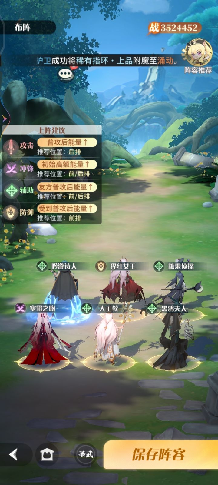 参加过三次测试,每次都用心在玩,也感受到了不同阵容的强度。首先不管什么阵容都要带的人权卡,ur天极——弥撒,半步天极——蜜雪儿。这两个角色是官方的卖点,都有氪金活动,而且强度很高,且每个阵容都可以带,羁绊很灵活。这两个角色属于必带副养的。零氪中微氪党推荐玩极夜女王队或者古域冲锋队,这两个阵容都不是很花资源而且强度很高很全面,前中期强度一直在线。