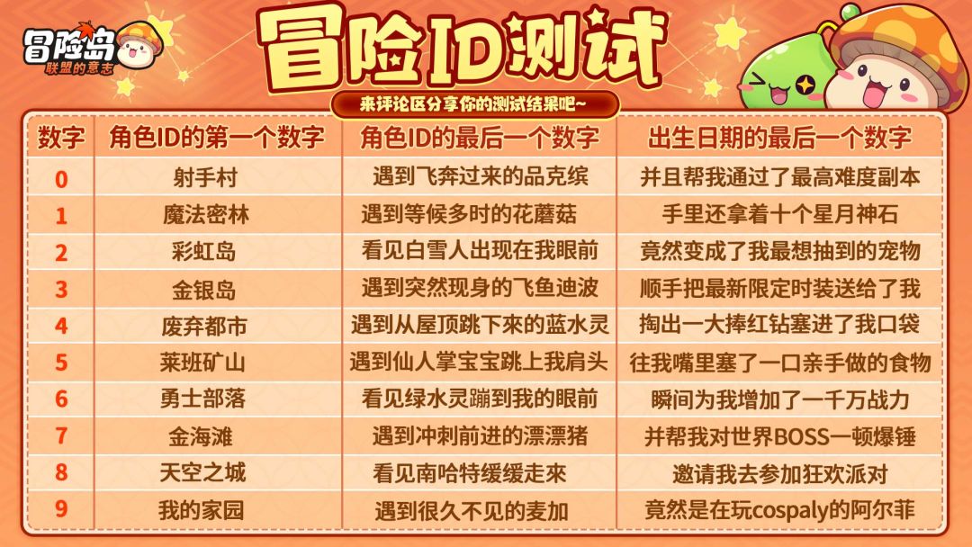 冒险家们都来看看自己的冒险ID占卜结果是什么吧~~