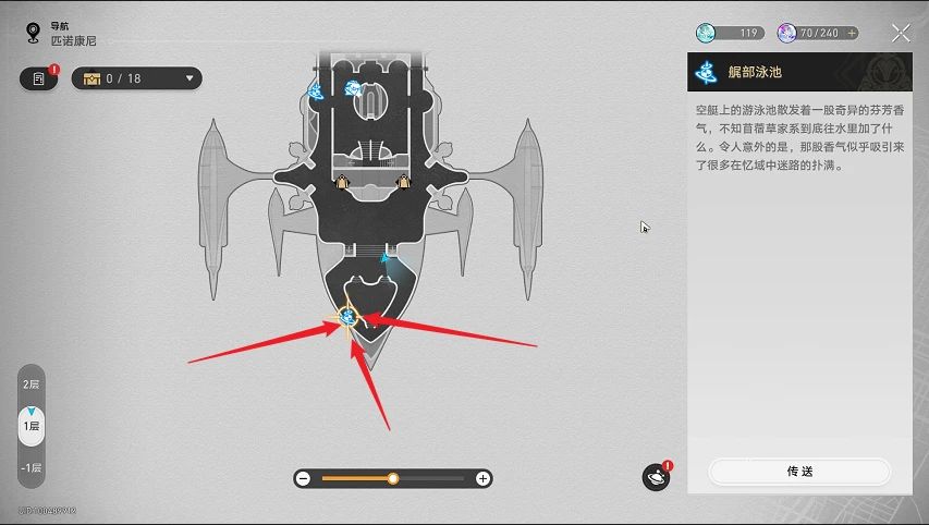 我们先传送到匹诺康尼—晖长石号下方泳池的锚点处