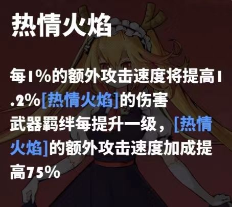 注意事项:武器三级羁绊提升的是基础攻速,无法转化为热情火焰伤害加成