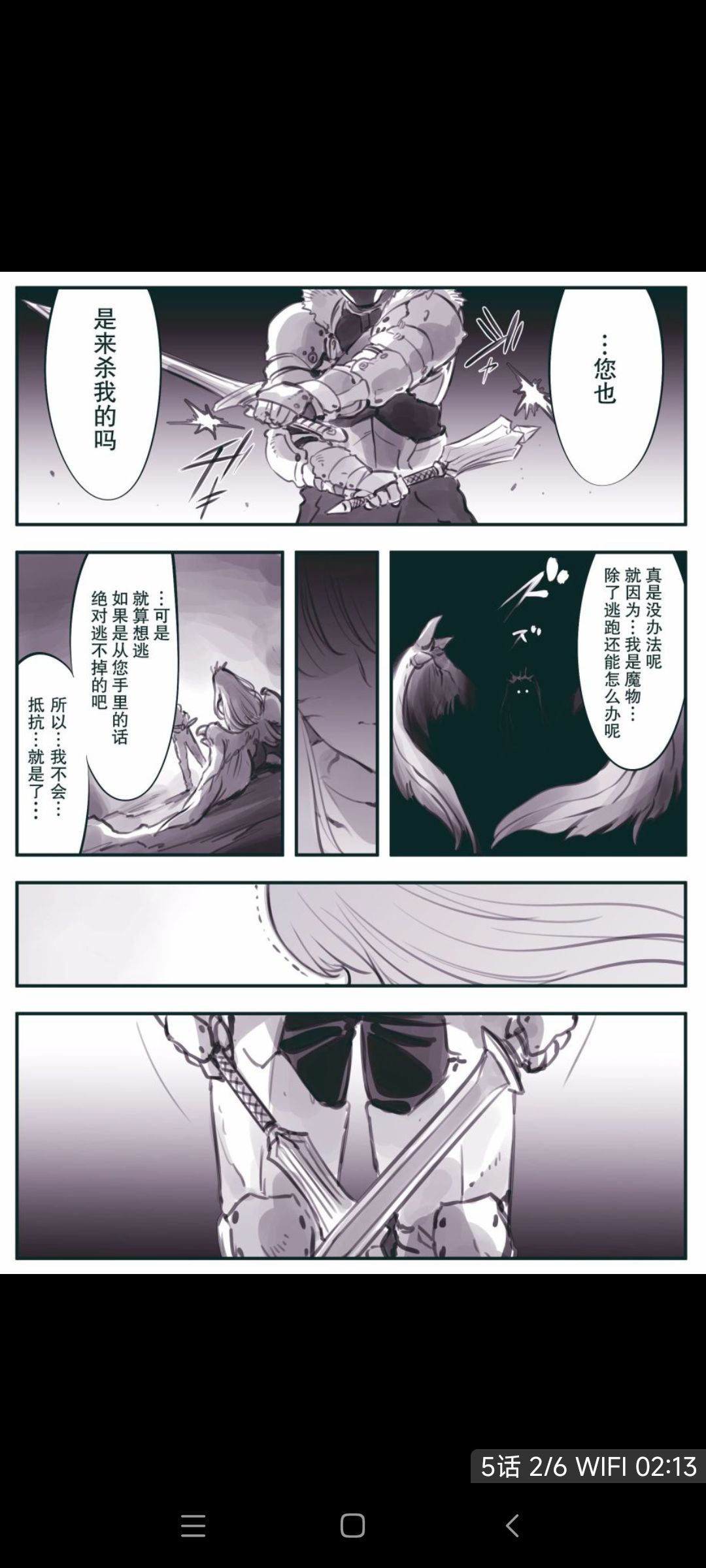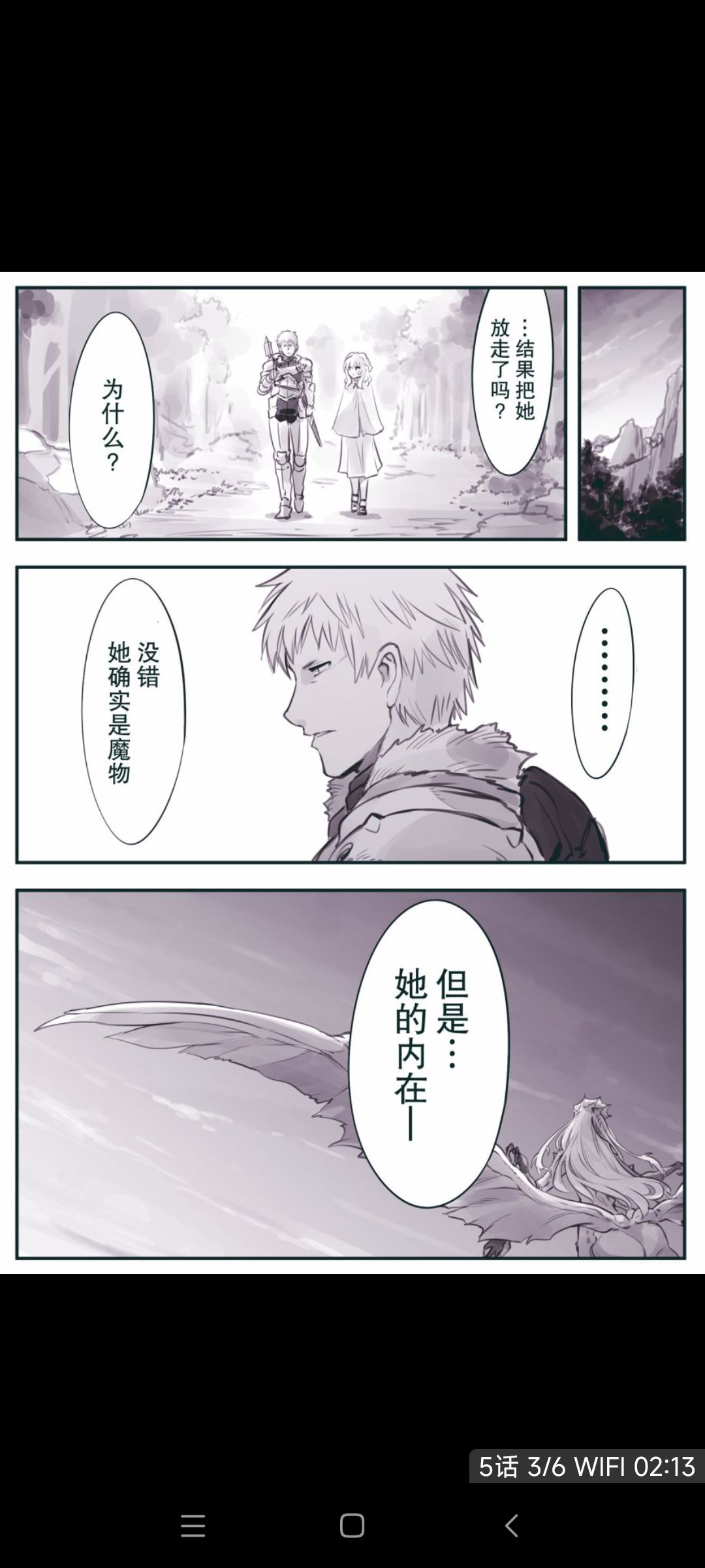 而主角(强到爆的冒险者)看到这个悲惨的魔物之后,决定不杀她了,理由是因为听到了人类的声音,