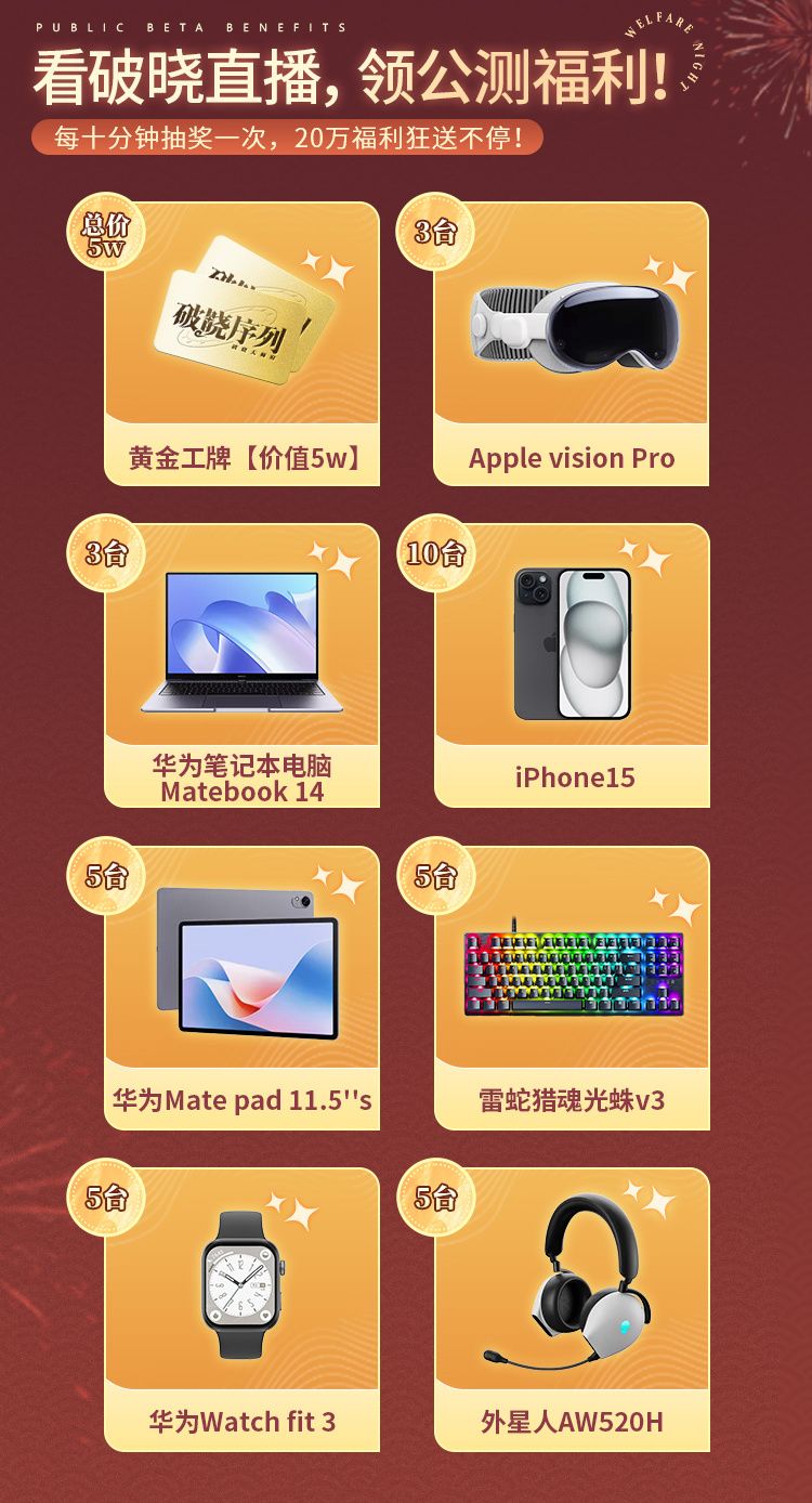 2024年6月26日晚20:00,【破晓序列手游】官方抖音账号将开启“公测福利夜直播”!
