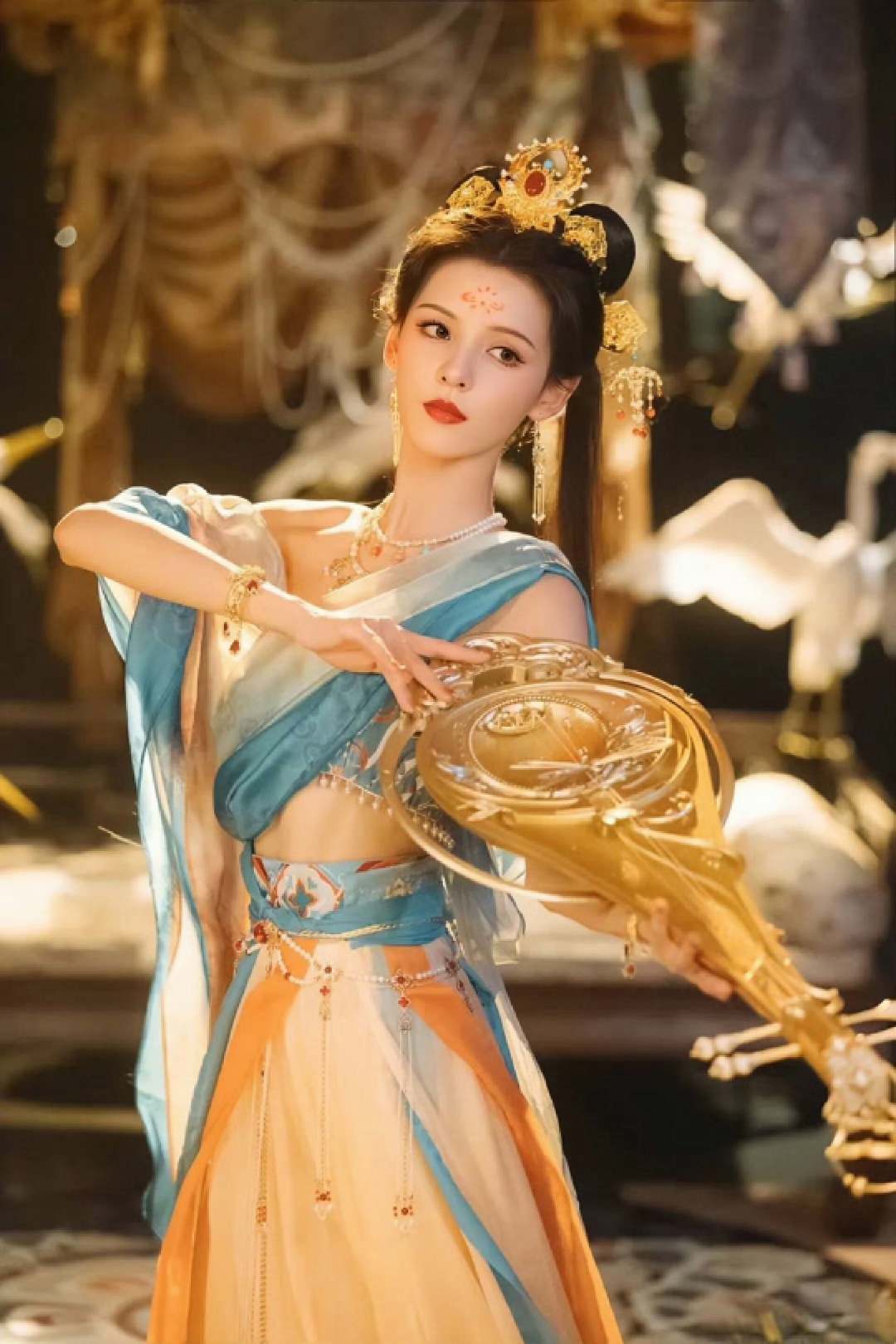再来杨超越还有杨颖的COS造型也是比较好看的,特别是杨颖,感觉她的灯光师非常的给力。给她打光打的特别好,当然她的妆容也是比较不错的,身上的敦煌元素,也是为她的COS造型加持了很多。