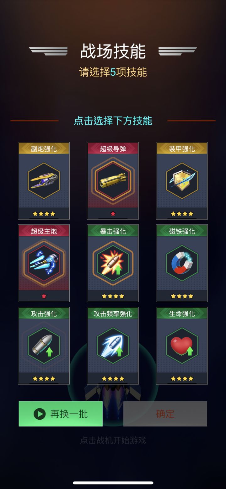 技能选择:主炮➕导弹➕攻击➕暴击,剩下依据自身战力情况加技能,战力高可以选择频率和副炮,战力低可以选择护甲、生命等。