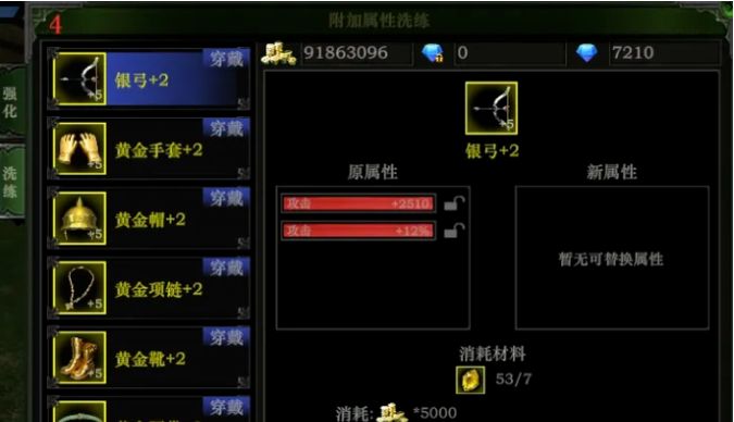 第四步:来到旁边的特装研究员这里,把之前准备好的一套黄金装备和洗练好的短弓进行转换。这样就可以达到目前的最强属性,最后再稍微强化一下就可以了。