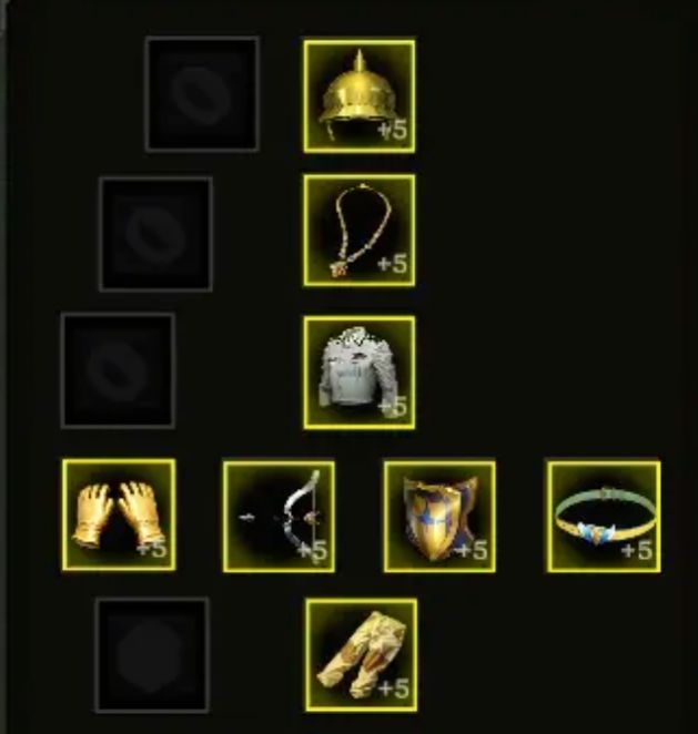 第二步:来到装备商人这里购买大量的10级金色短弓,因为这件装备的词条是目前上限最高的,而且成本低,如果有单个词条达到了上限就可以留下来用,其他的全部分解成黄色装备晶体,用于装备洗练。
