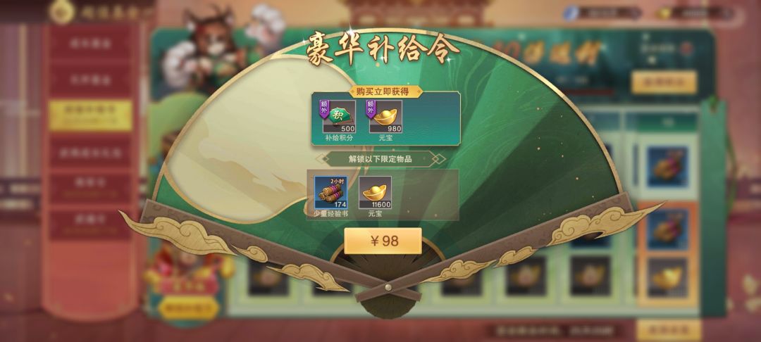 2.武魂令、将军令、经验补给令都是限时活动,收益很高,推荐购买。成长基金首次购买打折,存元宝必备。无序基金可先不买,等通关层数高后再买也可以。