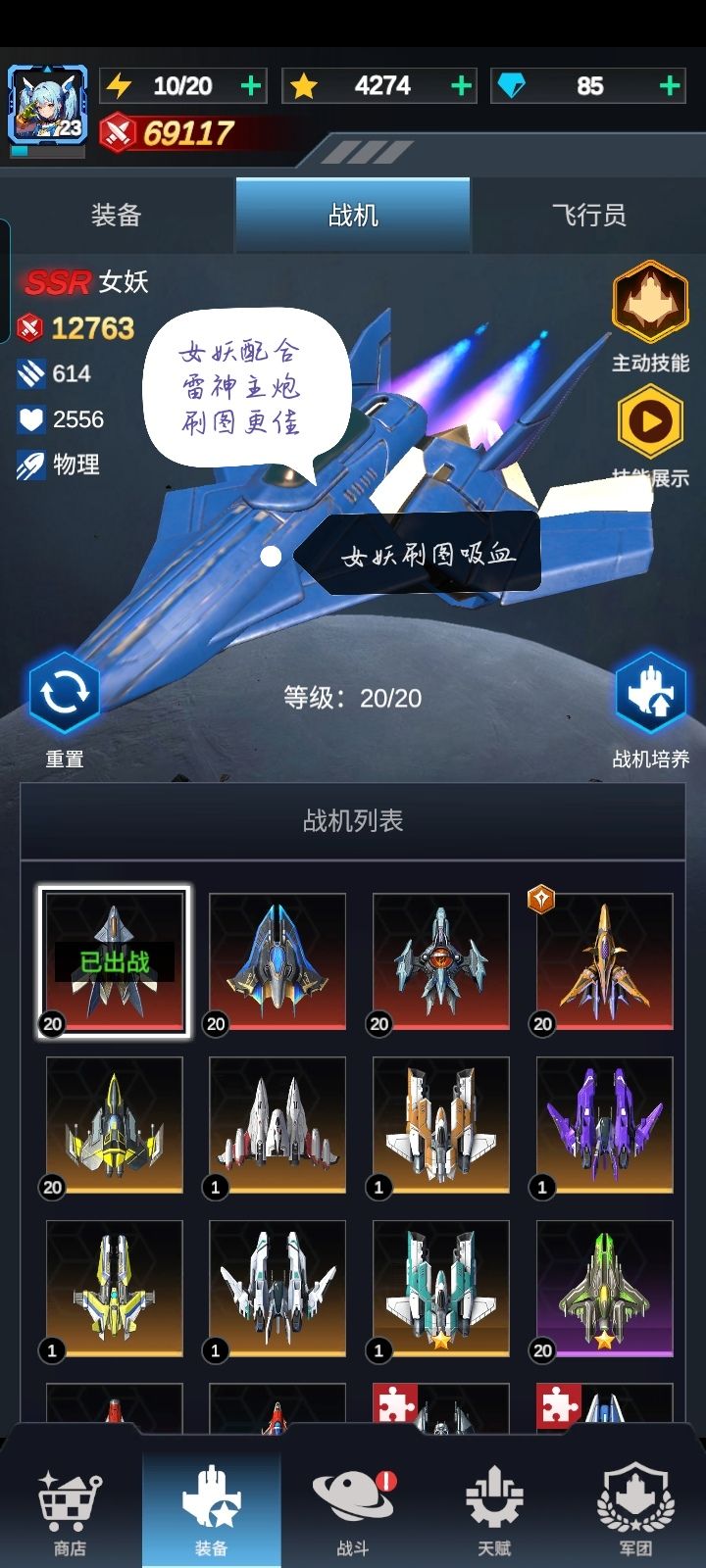 2.雷神主炮可以配合女妖战机第一形态击落敌对战机可回复1%血量的特性去通关更多的关卡