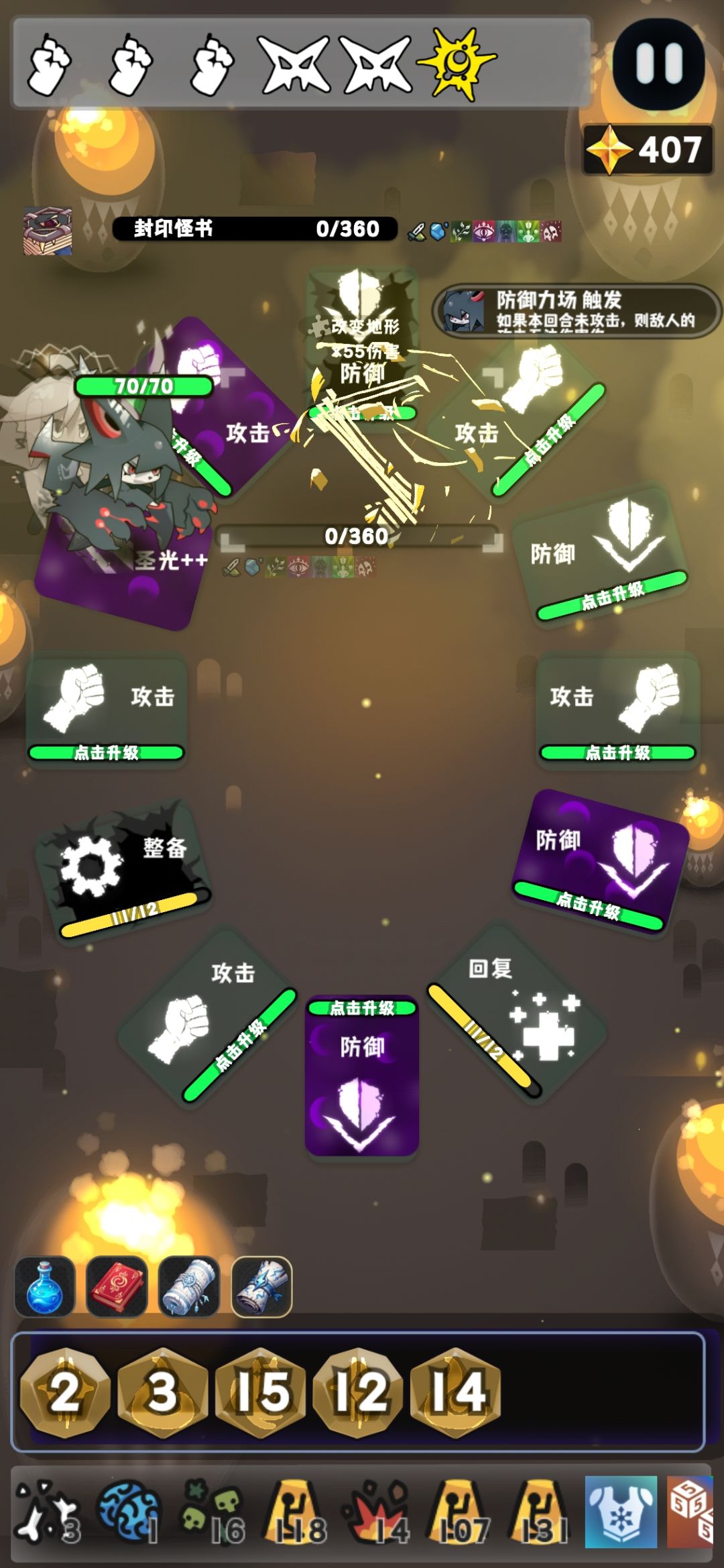 碰到封印石扔几个骰子一直结束回合就行他词条减伤。