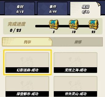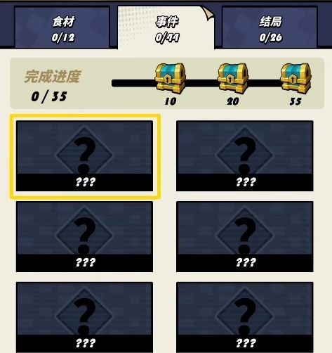 通过不同的地图探索奖励、事件、小怪、首领等地块,可以解锁食材、事件、结局图鉴,解锁不同图鉴能够获得解锁和进度奖励;