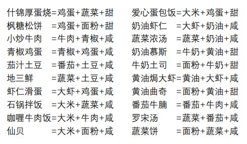 2)咸和甜两种调料将在研发料理时自动提供,无需另外获取;