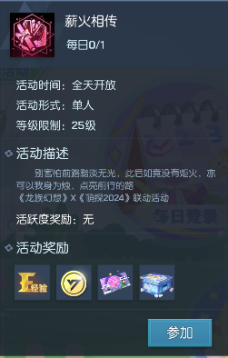 6月27日6:00-7月10日24:00期间,每日登录及达到指定活跃度,即可领取10级圣核兑换券、龙裔基因序列、进化石、龙萤、情牵不移礼券等好礼~
