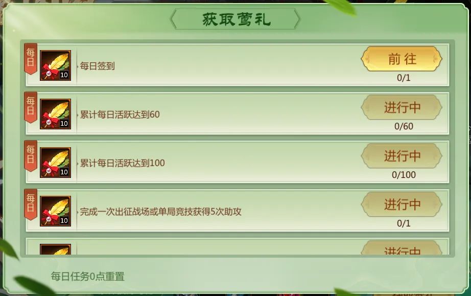 玩家可通过完成任务获得莺礼,消耗莺礼随机刷新一次奖励。