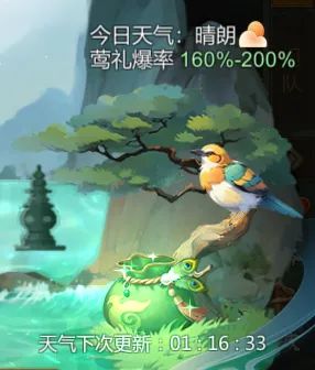 夏日天气多变,每日天气不同,不同天气下玩家可获得不同爆率的莺礼礼包。