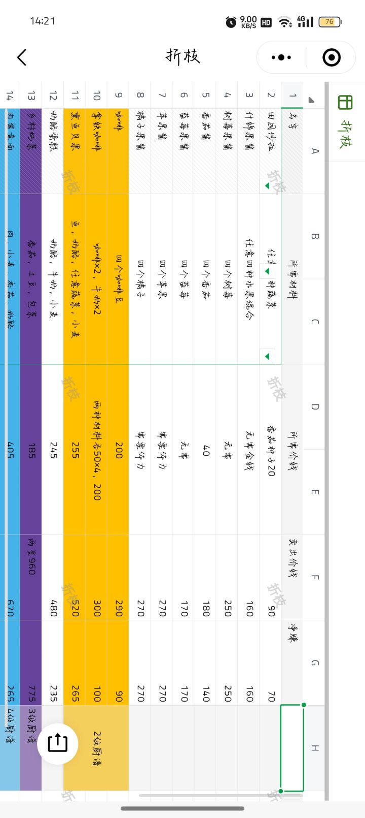 (1-9级)做菜,价格,菜谱,烹饪