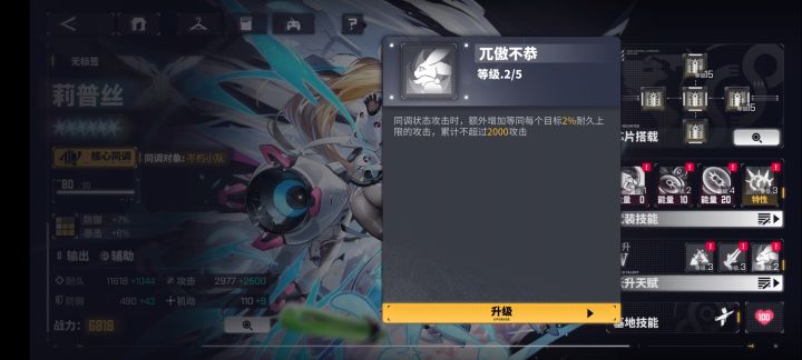 :刃齿二次出手+回能量。怕死强化防御和生命,不需要输出,速度比刃齿低是为了刃齿放完3技能,乌琳接3技能刃齿再次出手技能强化:2优先,3其次 /芯片强化:振奋套生命/防御+,速度<刃齿