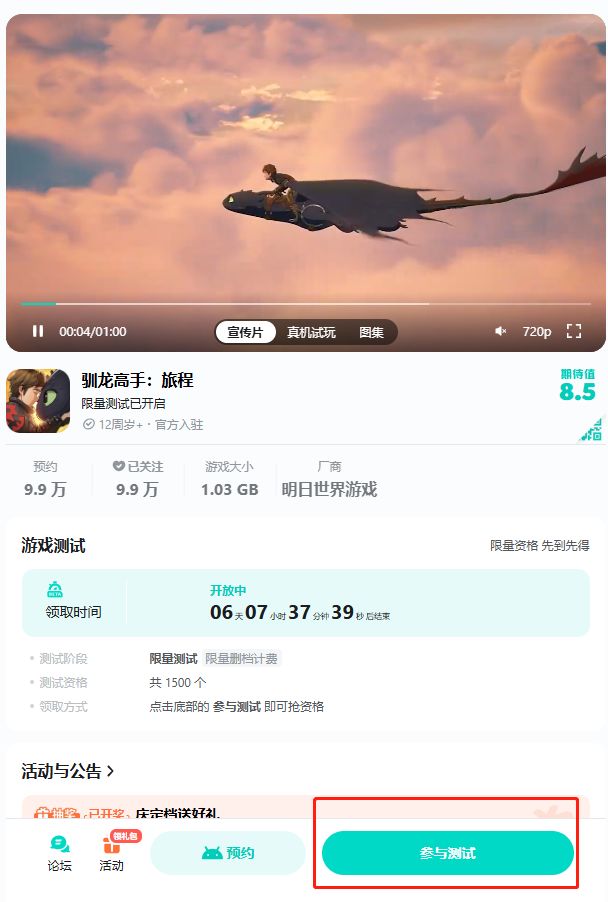 1.参与测试方式:进入《驯龙高手:旅程》专区首页
