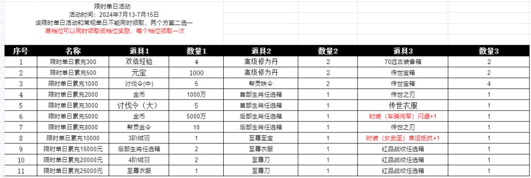 该限时单日活动和常规单日不能同时领取,两个方案二选一