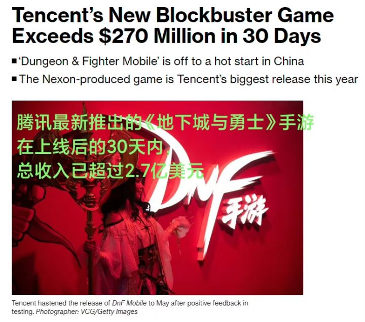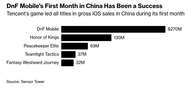 另外,彭博社也报道,DNF手游上线公测后,在苹果应用商店的下载量和收入排行榜上也位居榜首。