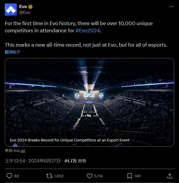 格斗游戏大会EVO 2024电竞史上规模最大 参赛选手破万